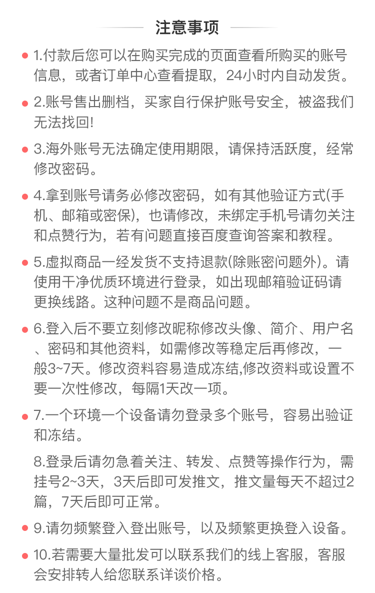 2.购买后您将获得账号电子邮箱、密码,无任何绑定,收到后请理解更改密码和绑定手机号等操作。
